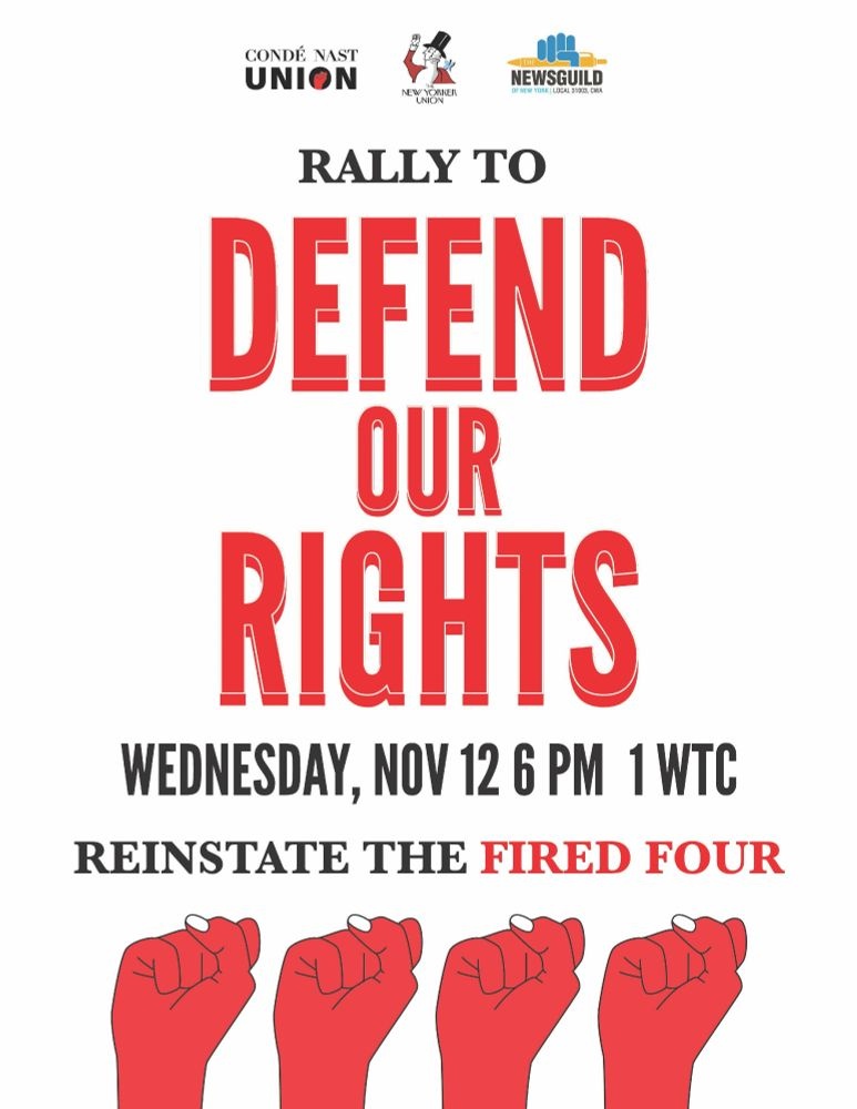 Come out and support those illegally fired and suspended by Conde Nast at a rally on Wednesday at 6PM EST outside the World Trade Center