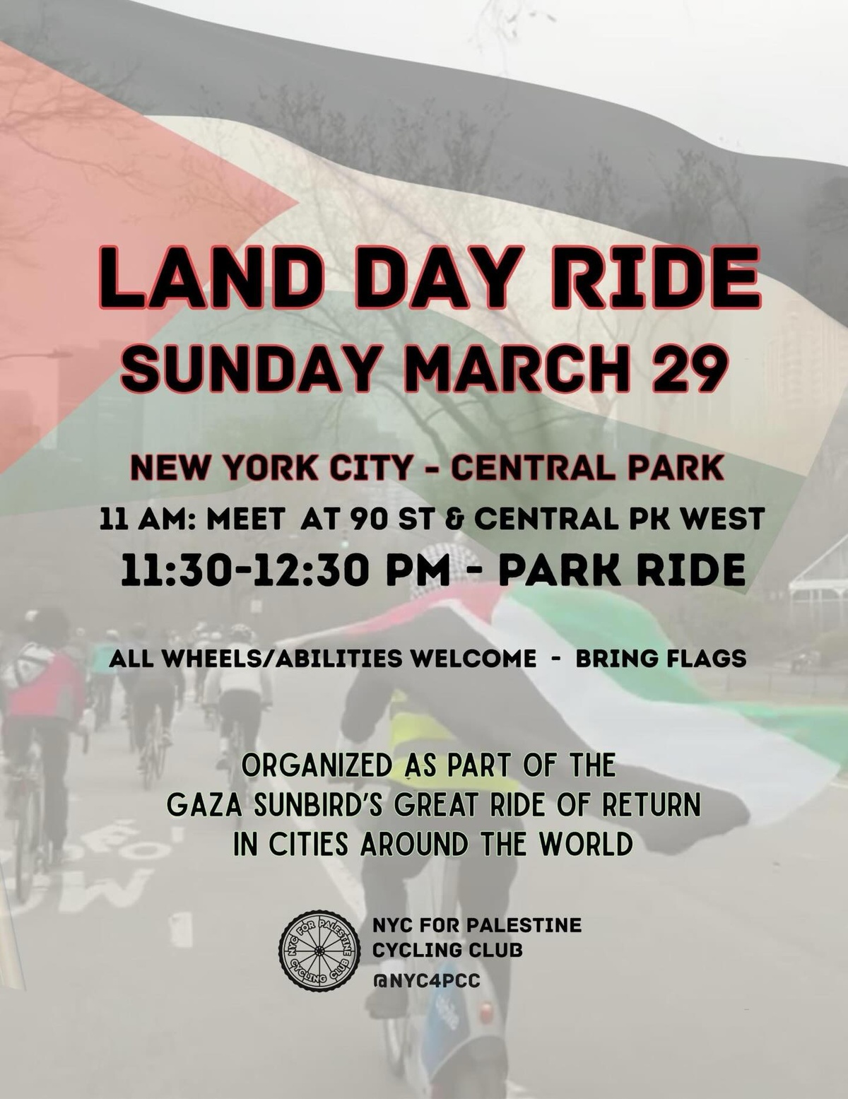 The ride will kick off our spring 2026 season and mark the one-year anniversary of NYC for Palestine Cycling Club.